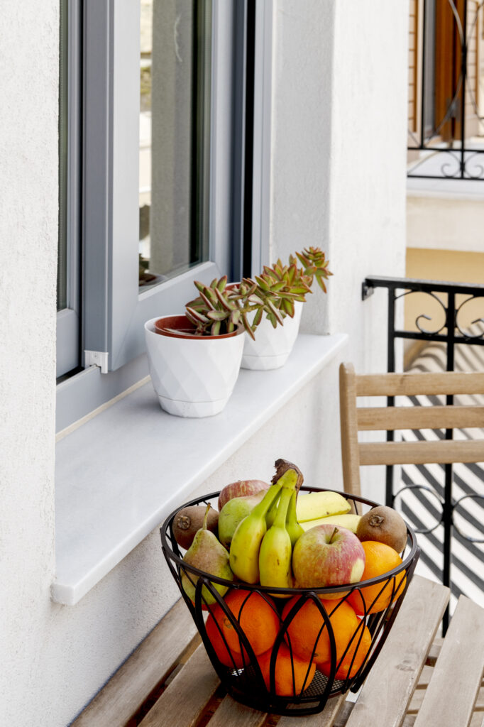 Δύο ιδιωτικά μπαλκόνια προσφέρουν γοητευτική θέα στον ζωντανό πεζόδρομο από κάτω. Είναι το ιδανικό μέρος για να απολαύσετε τον πρωινό σας καφέ ή ένα ρομαντικό ποτήρι κρασί το βράδυ, βυθισμένοι στην ατμόσφαιρα της Ερμούπολης. Είτε χαλαρώνετε είτε εξερευνάτε, το διαμέρισμά μας προσφέρει το ιδανικό περιβάλλον για να απολαύσετε τον χαλαρό μεσογειακό τρόπο ζωής.
